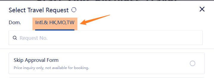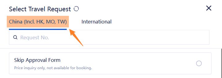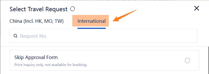 1)如预订国际/中国港澳台机票,在【国际/中国港澳台】类别下选择相应申请单。