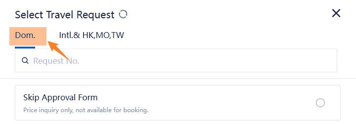 For the domestic flights, select the corresponding application in the [Dom.] category.